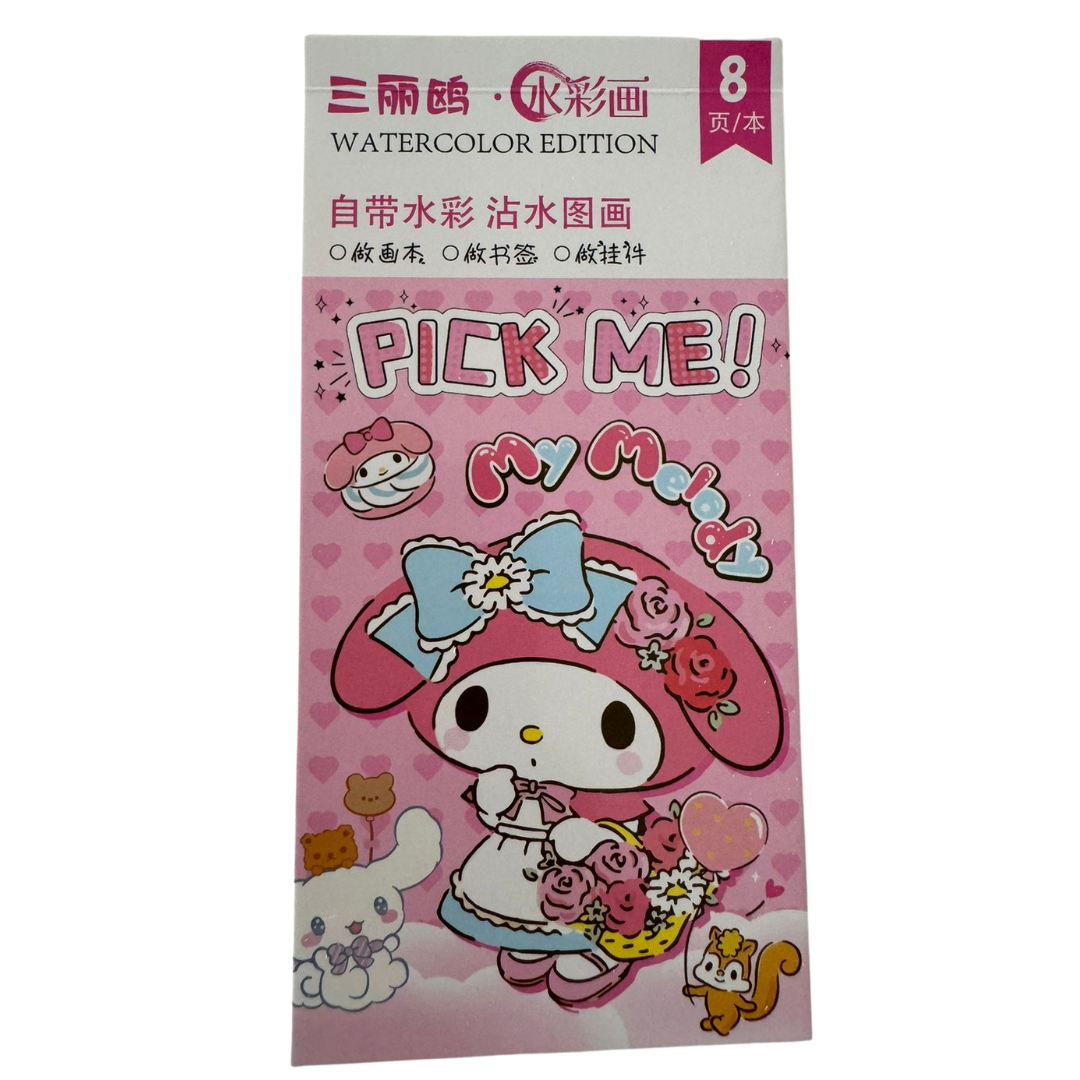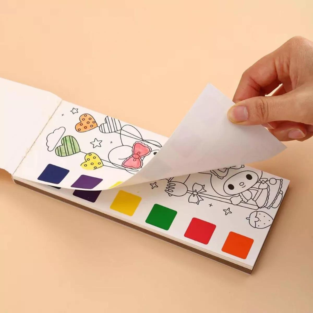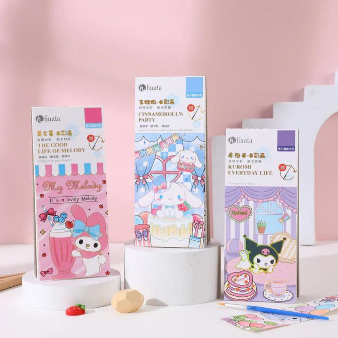 - Contiene 8 páginas de pintura con diferentes dibujos de tus personajes de Sanrio, 1 pincel y cada página tiene 6 colores, fácil de usar en cualquier momento.