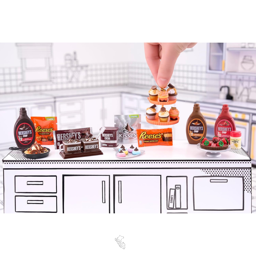 - COLECCIÓNLOS TODOS: Su réplica terminada no es el único artículo que vale la pena coleccionar. Desde versiones mini réplicas de varias botellas de jarabe de Hershey, hasta mini tazas de mantequilla de maní Reese, hasta Hershey's Cocoa Powder, hay tantos ingredientes únicos de la réplica de Hershey, paquetes y accesorios de cocina de Make It Mini Food para coleccionar y hacer tus propios mini coleccionables.