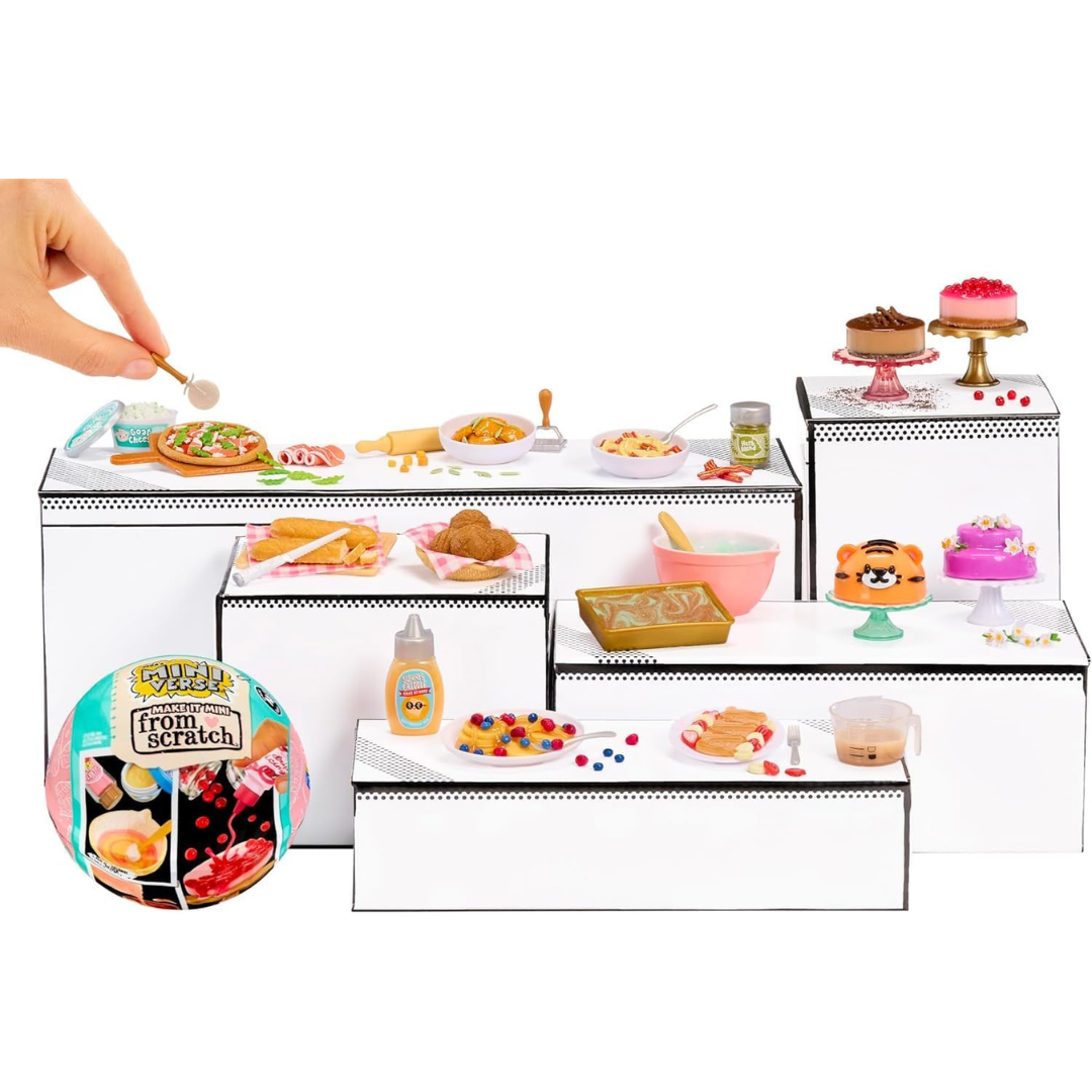 - MAKE IT MINI FROM SCRATCH™: ¡Make It Mini From Scratch™ trae la magia de hornear al mundo de los mini coleccionables! ¡Crea tu propio mini postre y buenas réplicas horneadas "desde cero"! Miniverse™ de MGA es el mini coleccionable ORIGINAL donde puedes HACER, CONFIGURAR Y MOSTRAR tus creaciones.