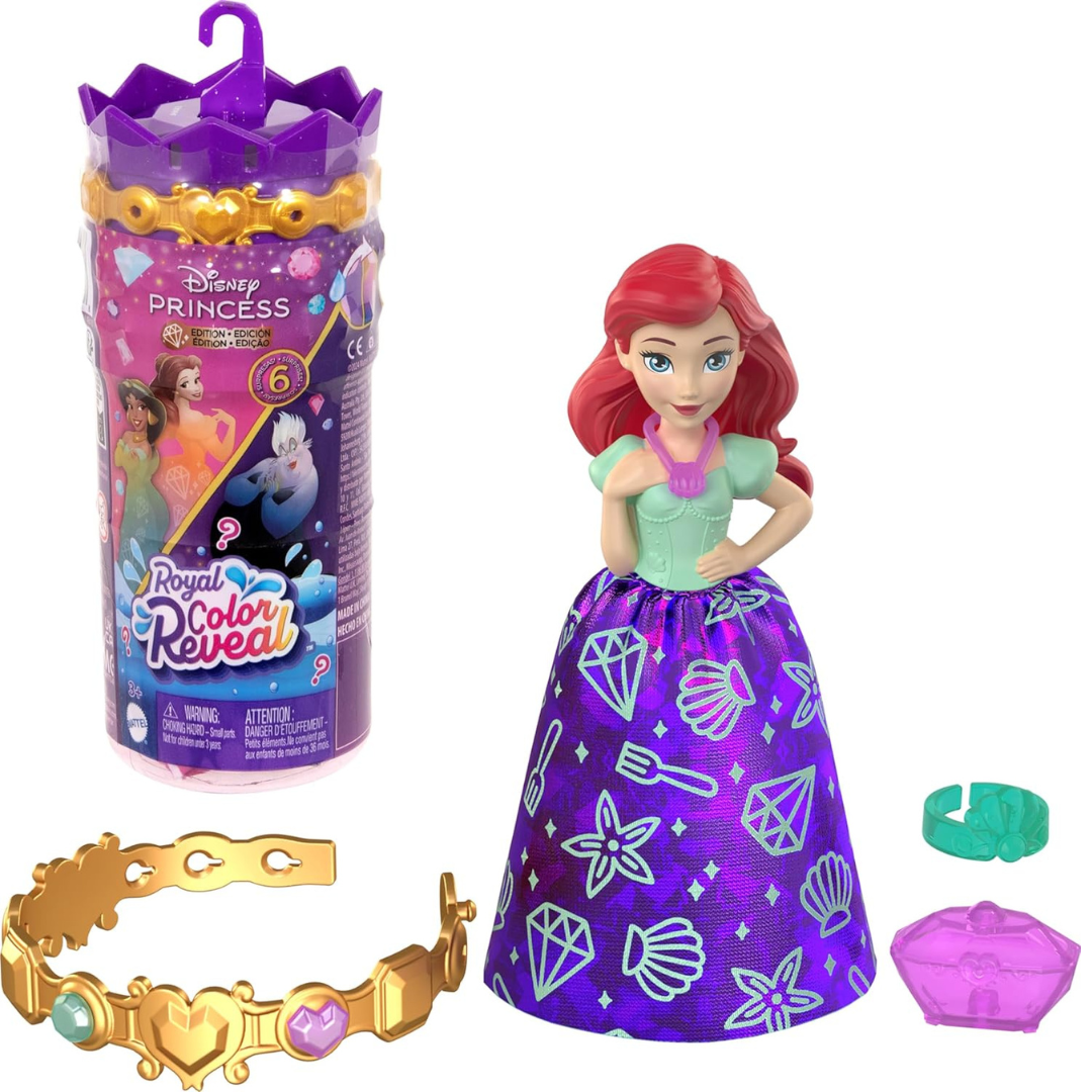 - Los villanos de Disney se unen a las populares muñecas Disney Princess Royal Color Reveal con una muñeca pequeña con temática de gemas y 5 sorpresas en cada caja