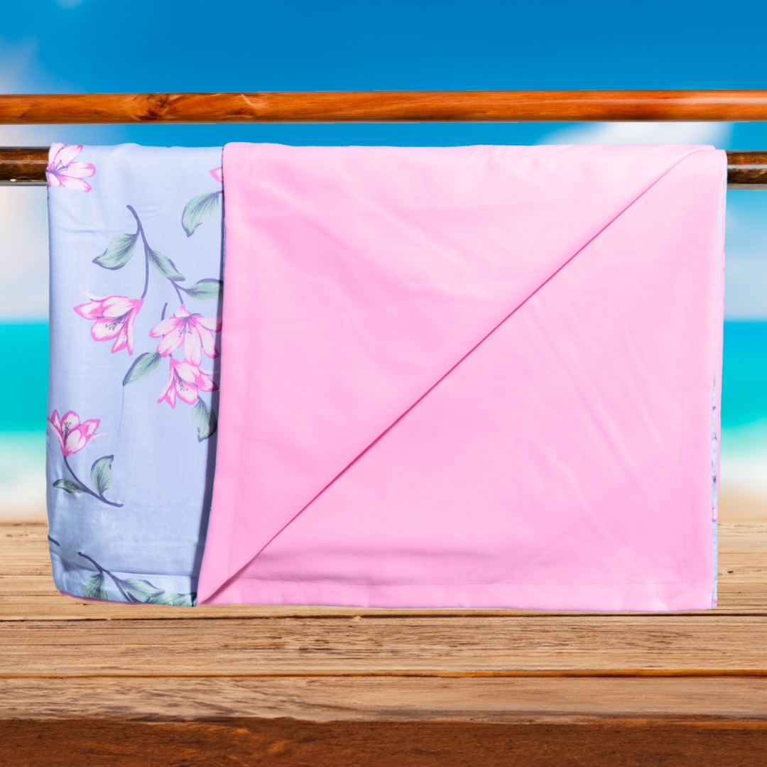 Toalla de Microfribra Pareo Flores Celeste / Rosado